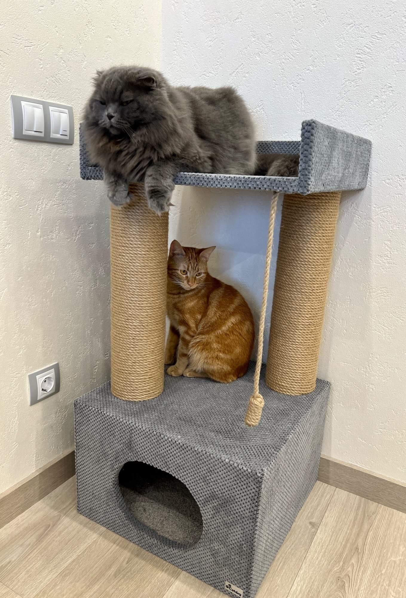Zdjęcie przedstawia kompleks „Palmyra”, który został nieznacznie zmodyfikowany na życzenie naszego klienta. Górna kondygnacja została usunięta, a na drugiej dodano boczne ścianki dla wygodnego i komfortowego wypoczynku 🐈.