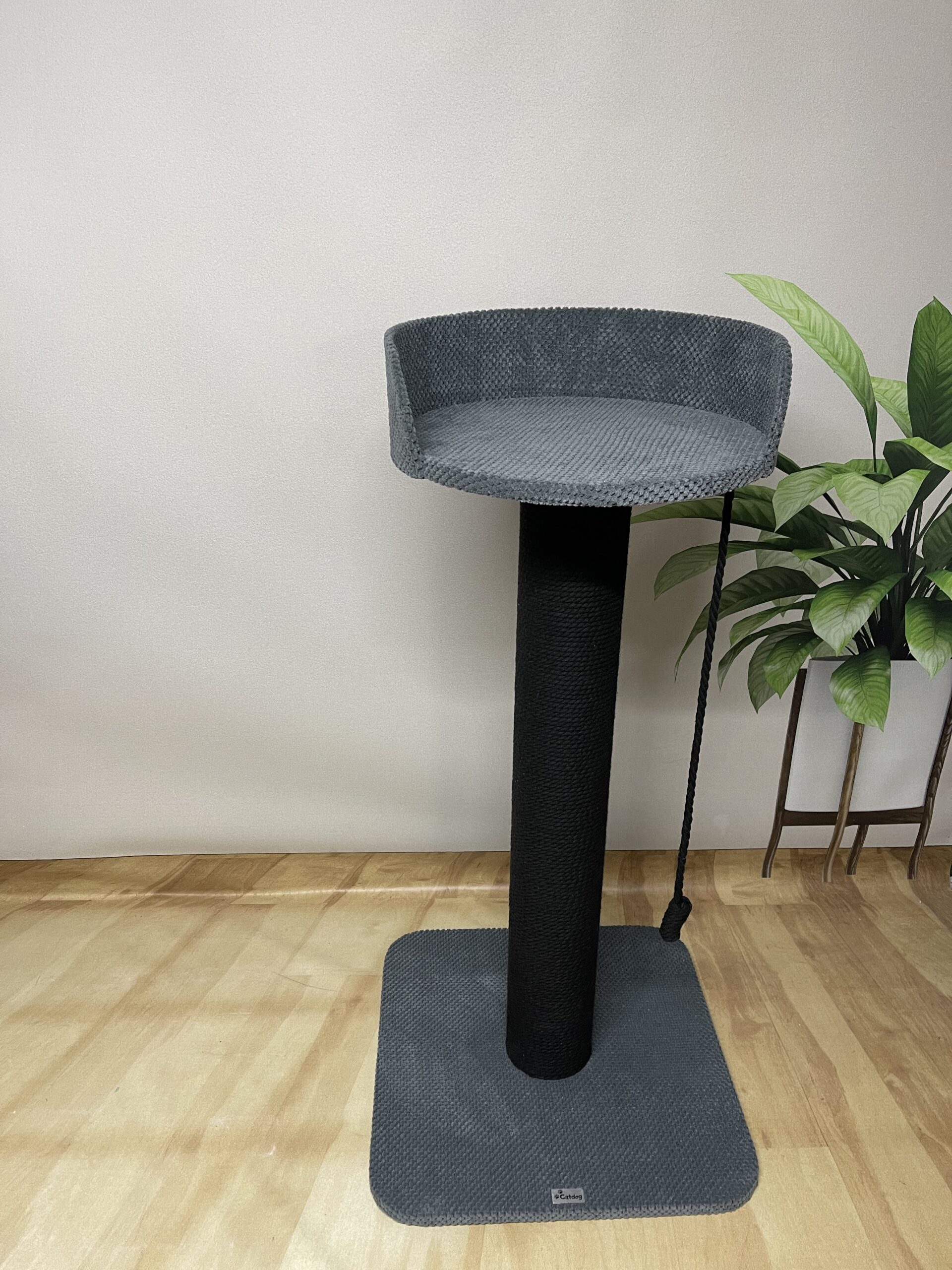Drapak "Bonia" z okrągłym słupkiem, drapak z legowiskiem dla kota, wykonany z czarnej liny, 90*50*50cm