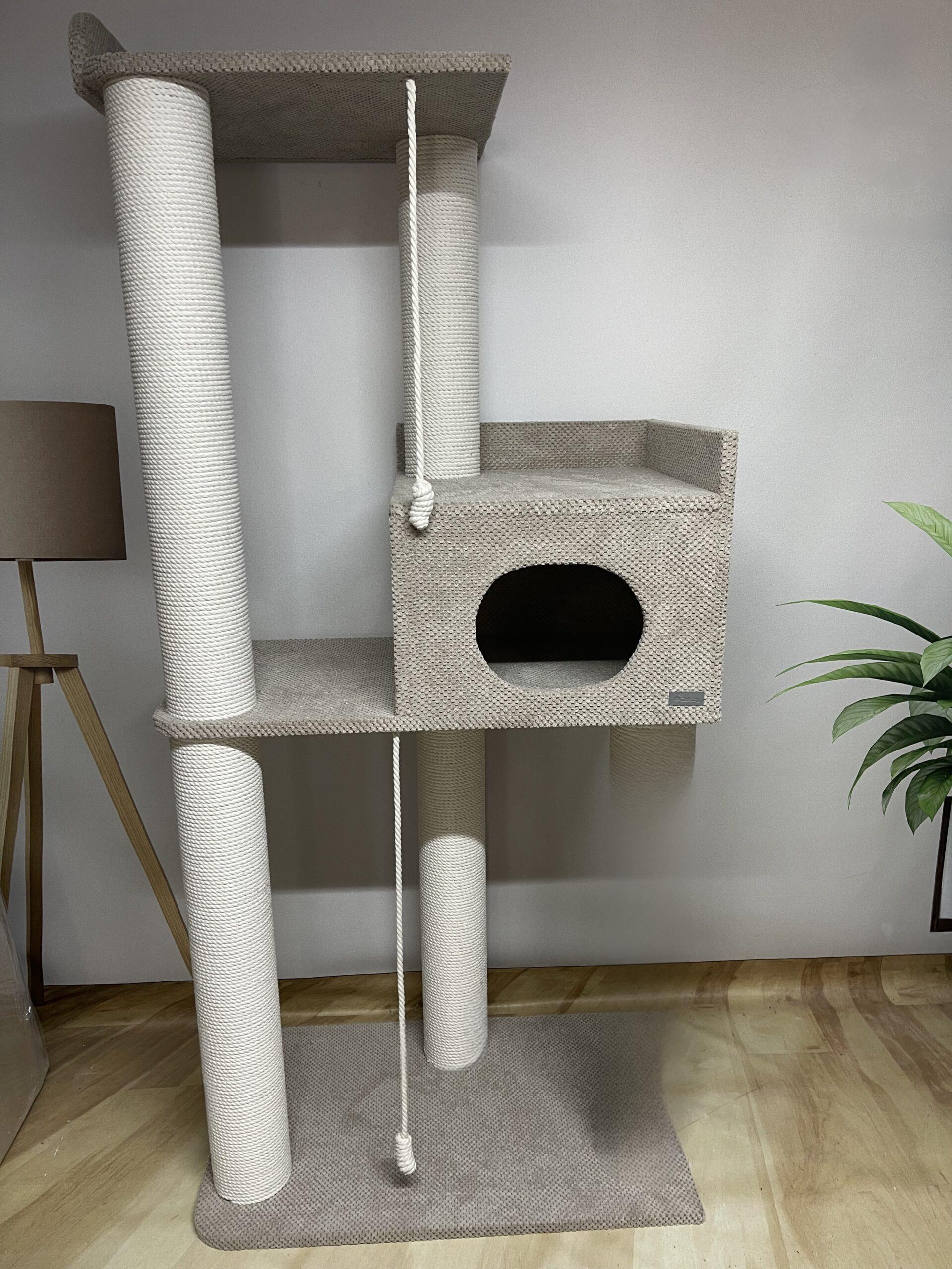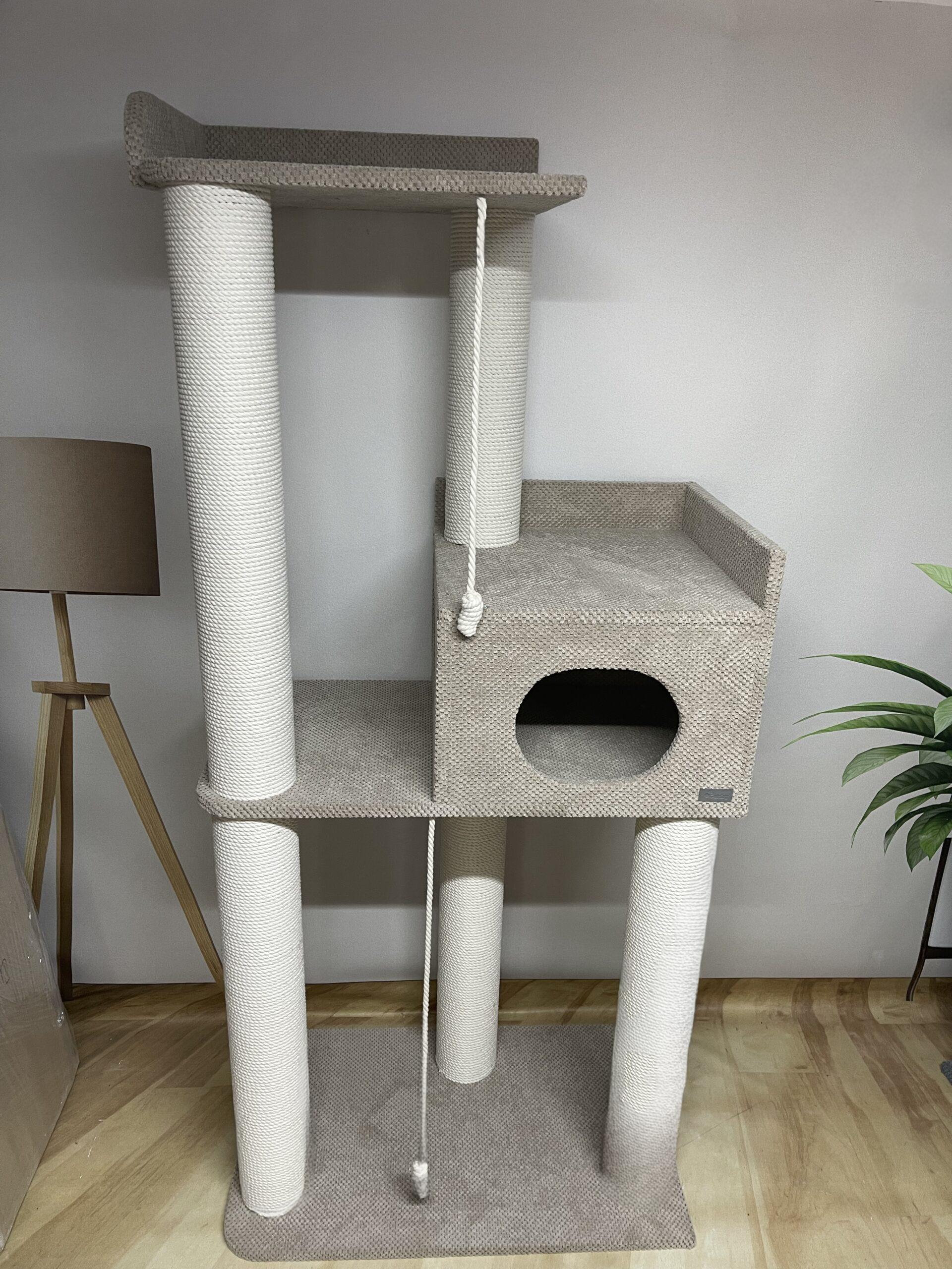 Górny leżak został powiększony do rozmiaru 45*50 cm, aby było wystarczająco dużo miejsca nawet dla największych 🐈, a do niego dodano kolejną kolumnę nad domkiem, aby nie trzeba było go mocować do ściany i zachować stabilność całej konstrukcji 👌