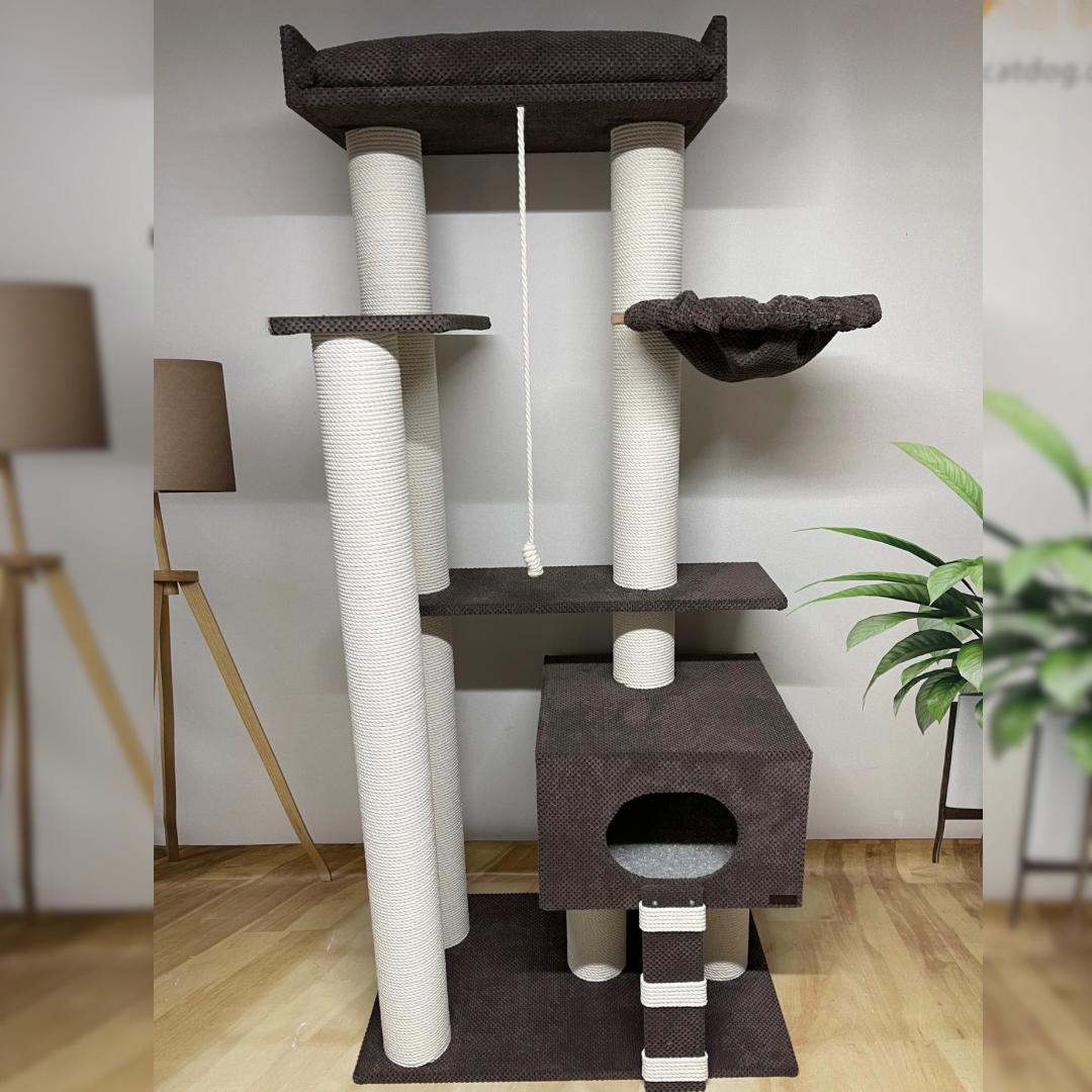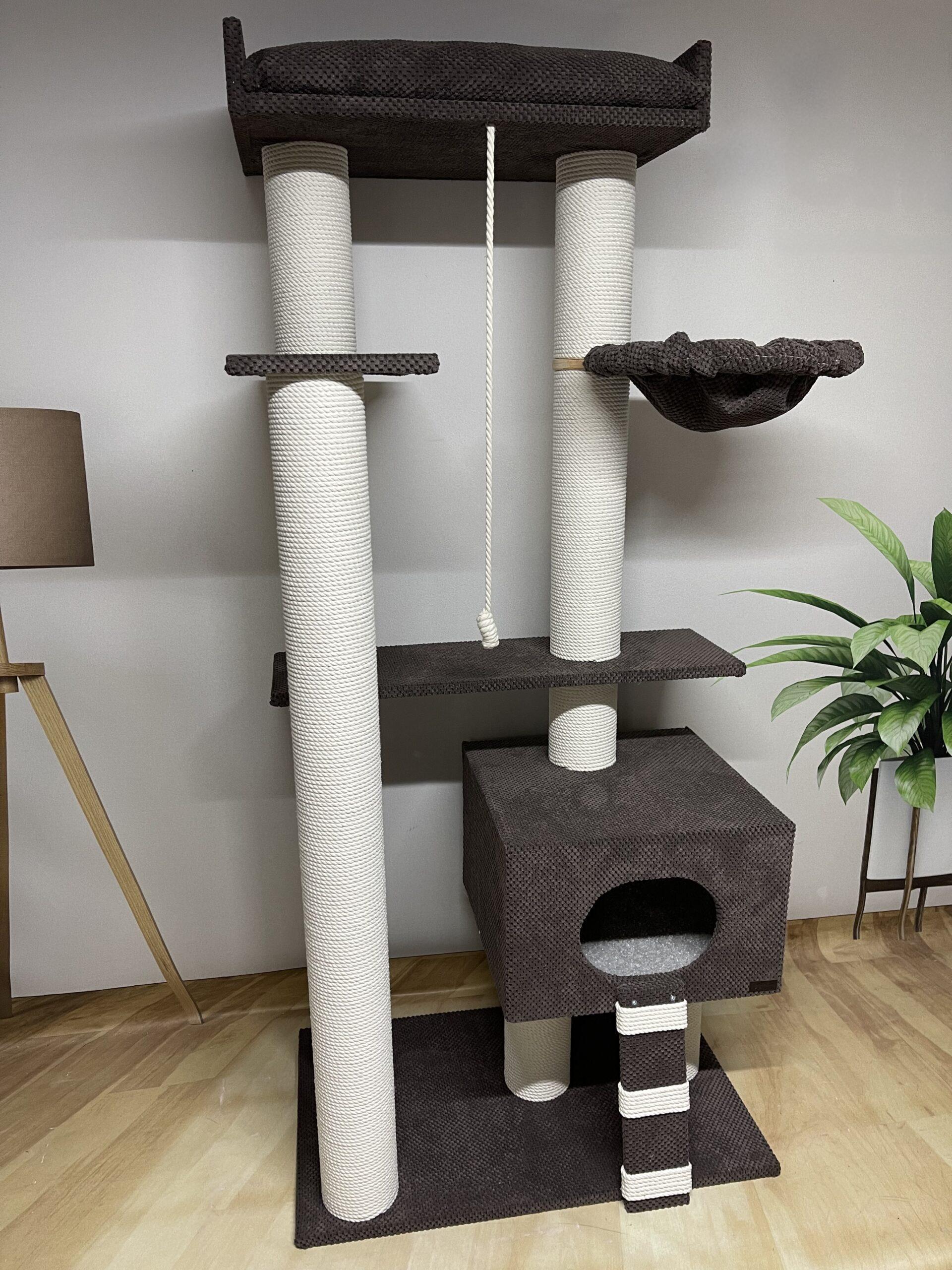 Zestaw zabawowy "Charlie" dla dużych kotów z domkiem i hamakiem do budy, wykonany z białej liny, 175*80*50 cm